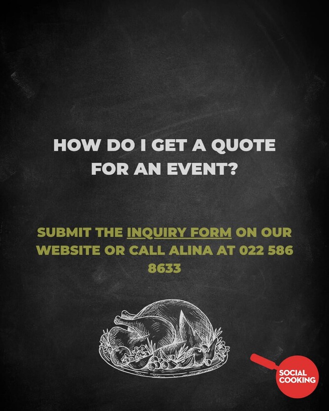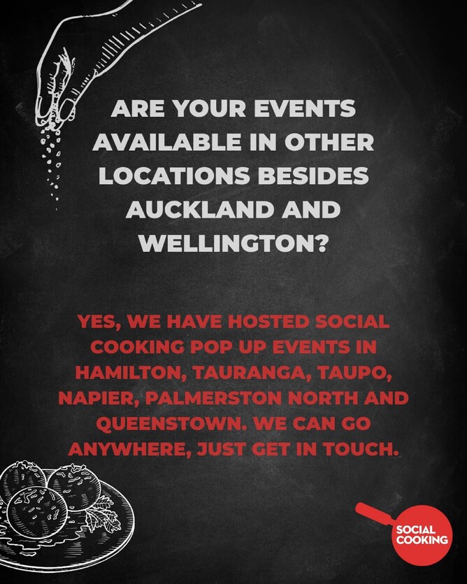Jacqueline Edie (Operations Manager) +64 27 857 3812. Jacqueline@socialcooking.co.nz