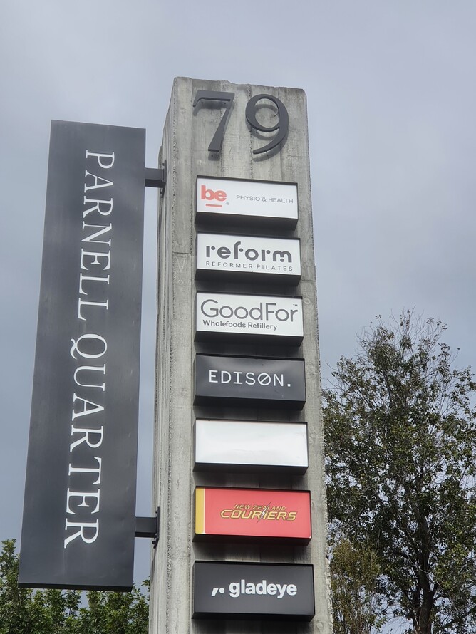 Look for the pylon showing 79 St Georges Bay Rd, Parnell Quarter
