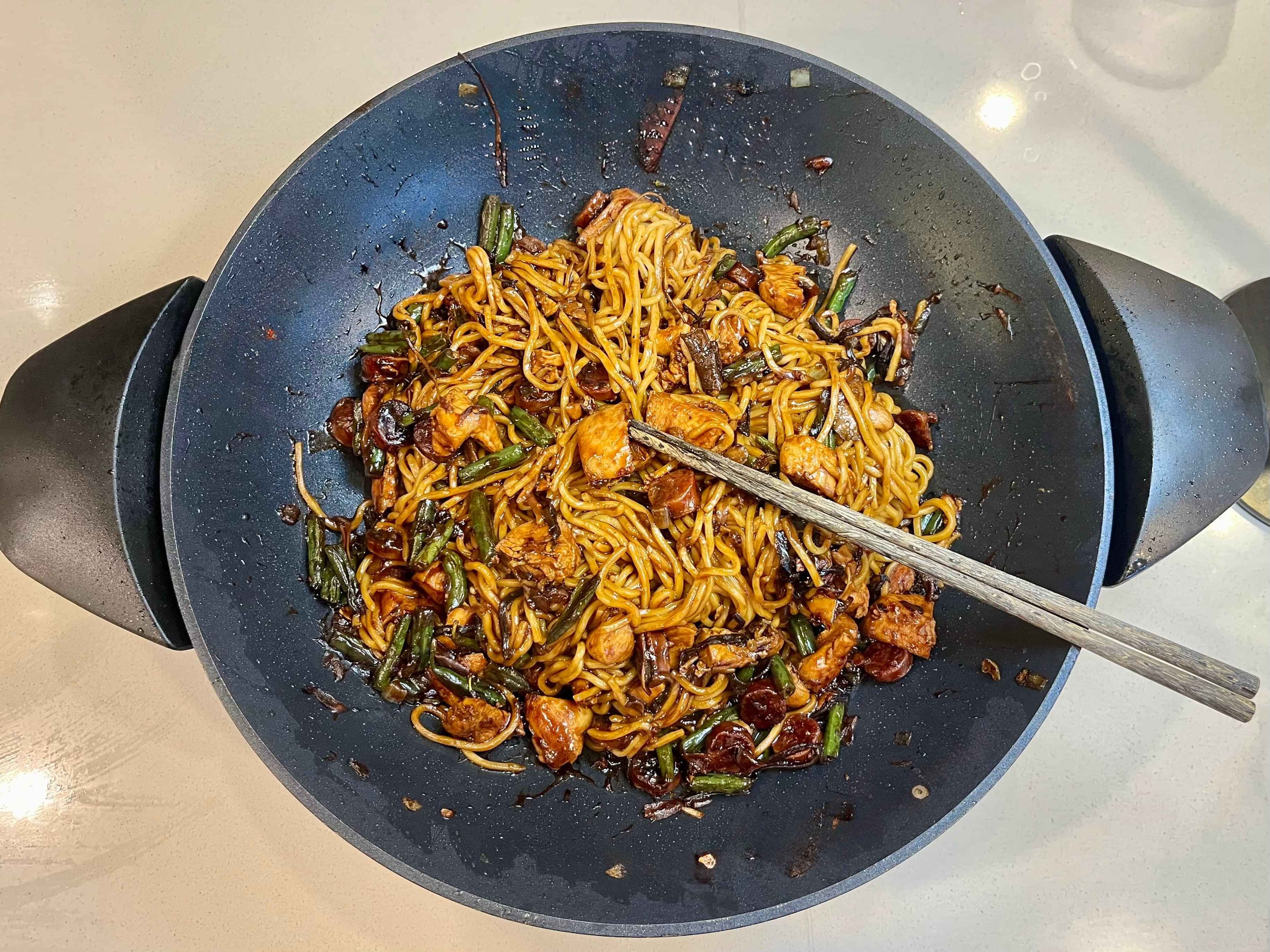 Longevity Noodles with Chicken and Lup Cheong Sausage